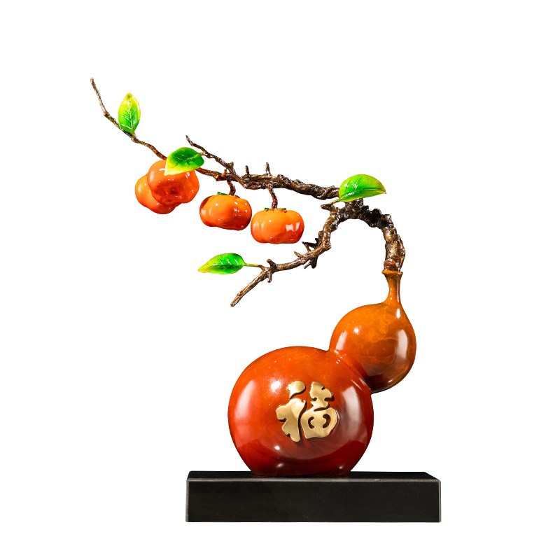 铜葫芦摆件,枝果丰盈寓意事事如意,诸事顺心;色彩细腻,古朴典雅,装饰与送礼佳选