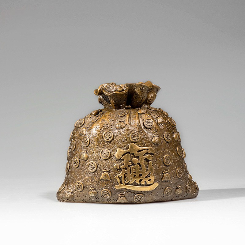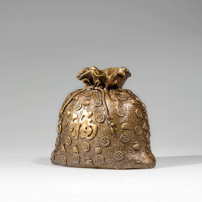 铜铸福袋,象征财富满盈与好运常伴,精选国标黄铜,高温着色,原创设计,收藏与送礼皆宜