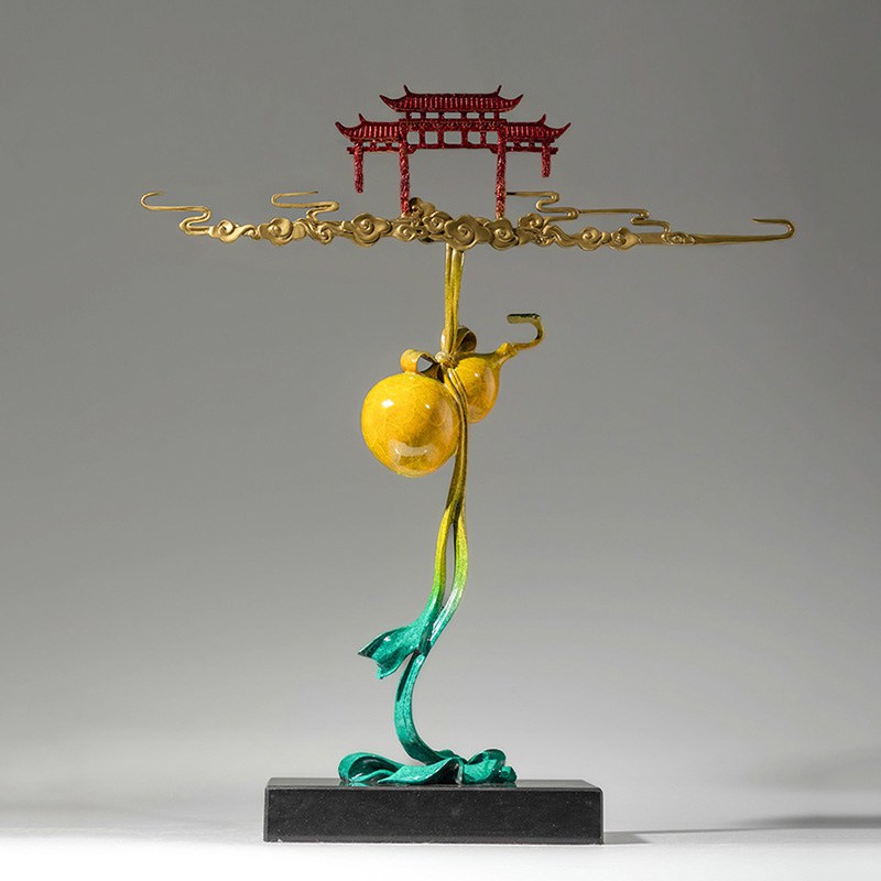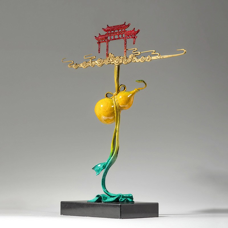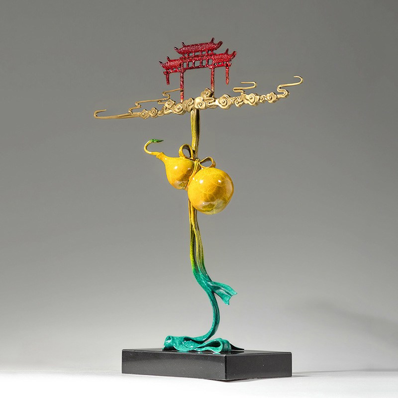 铜铸福禄葫芦摆件,寓意福气连连、喜报临门,精选国标黄铜,高温着色,原创设计,典雅大气。